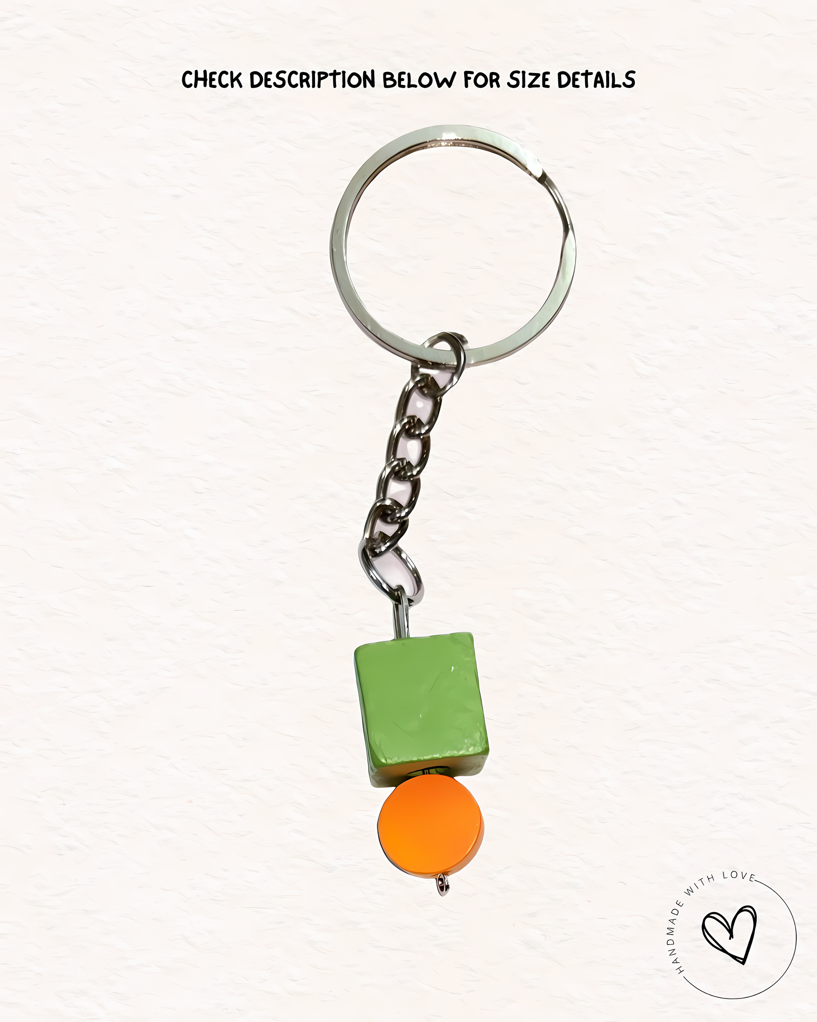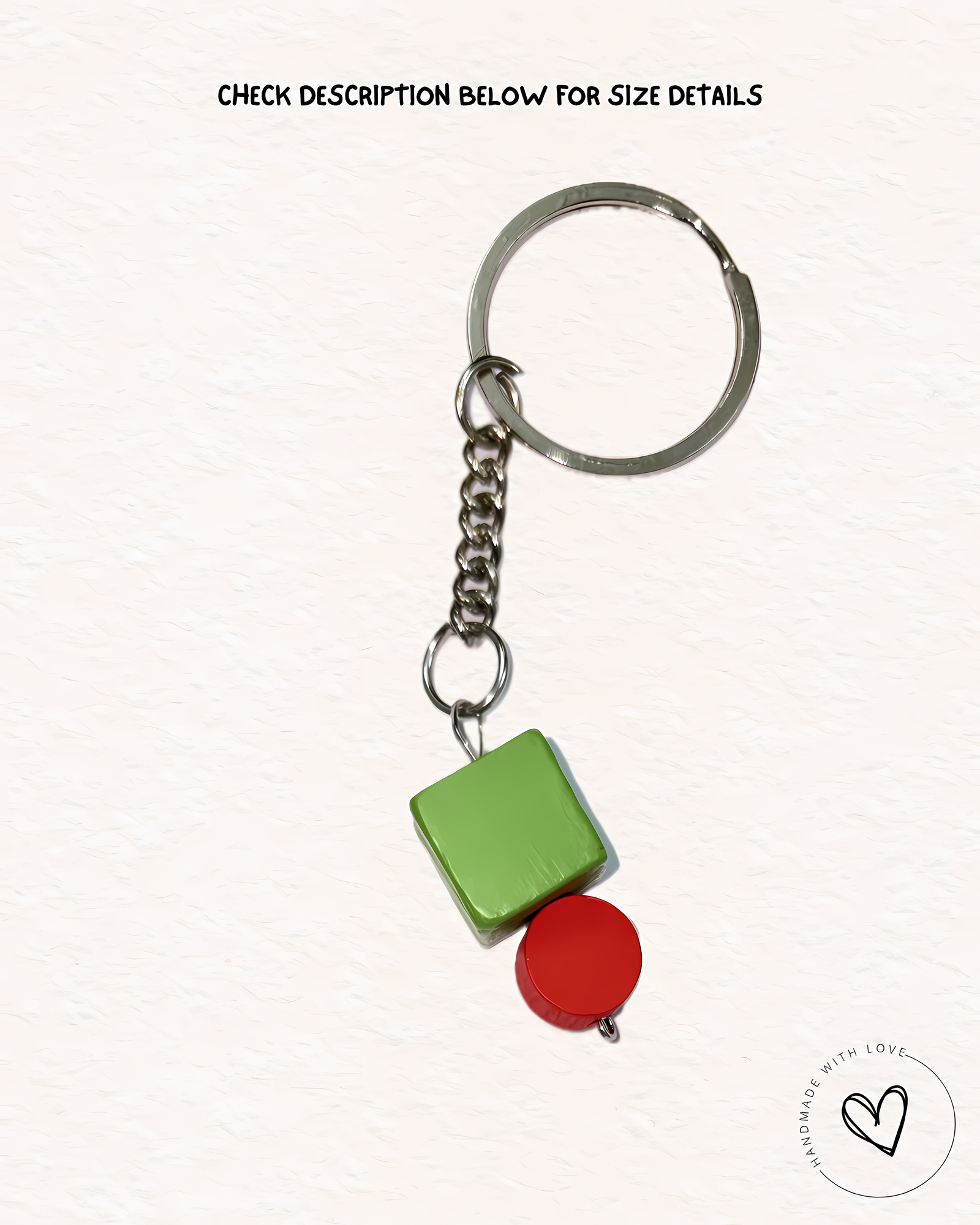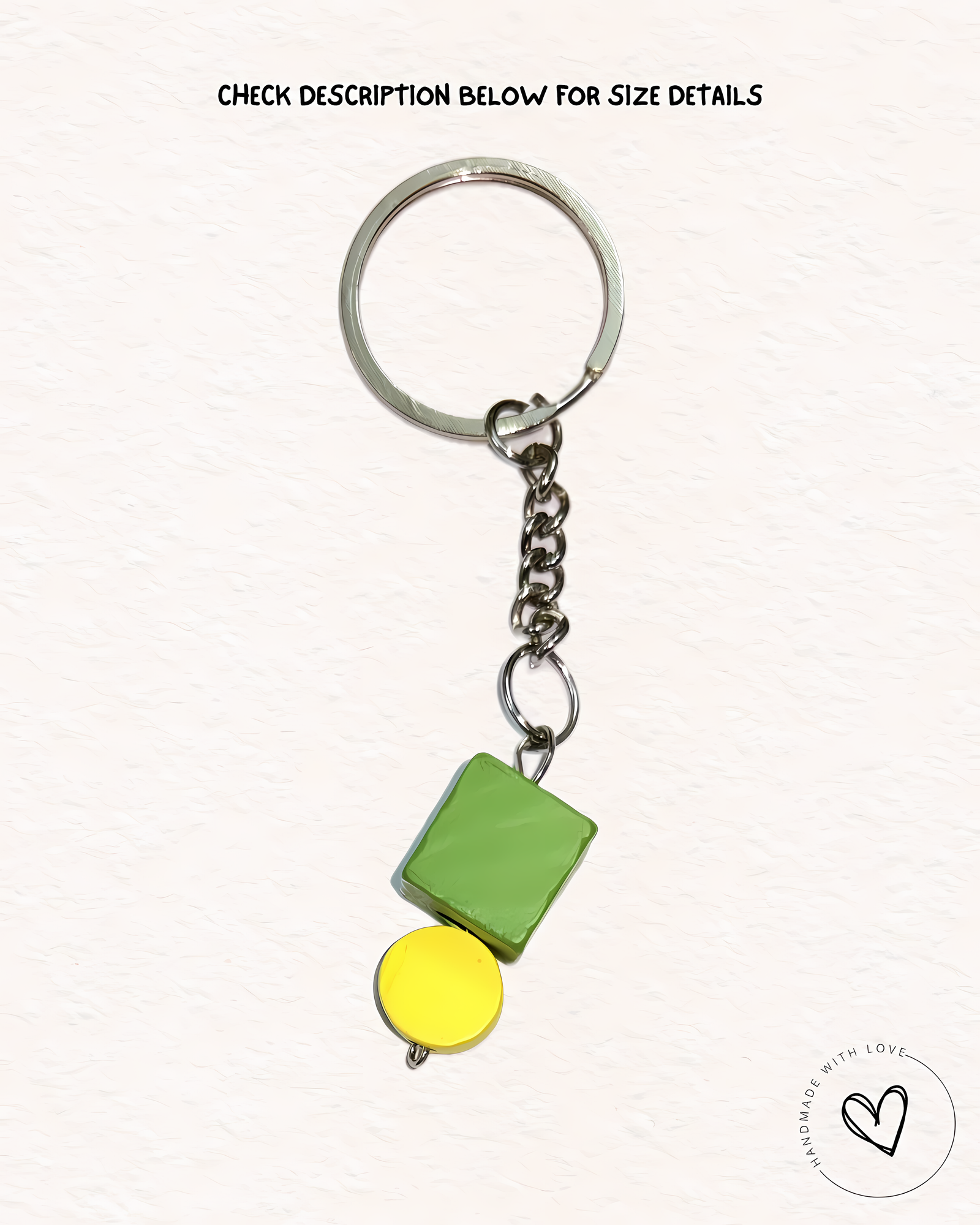Poppin’ Green Cube Wooden Keychain – Handmade Jewellery by Beadu